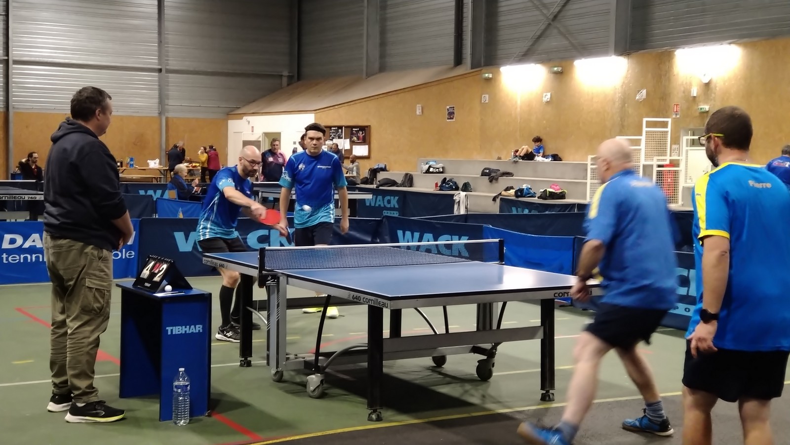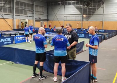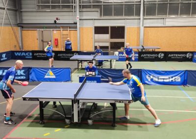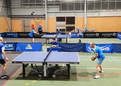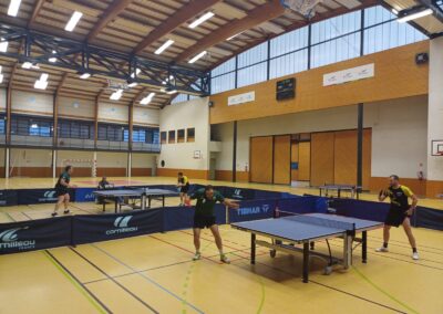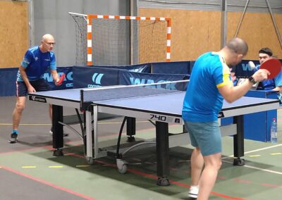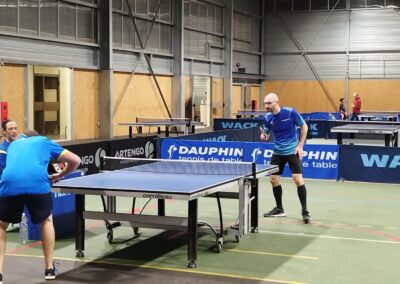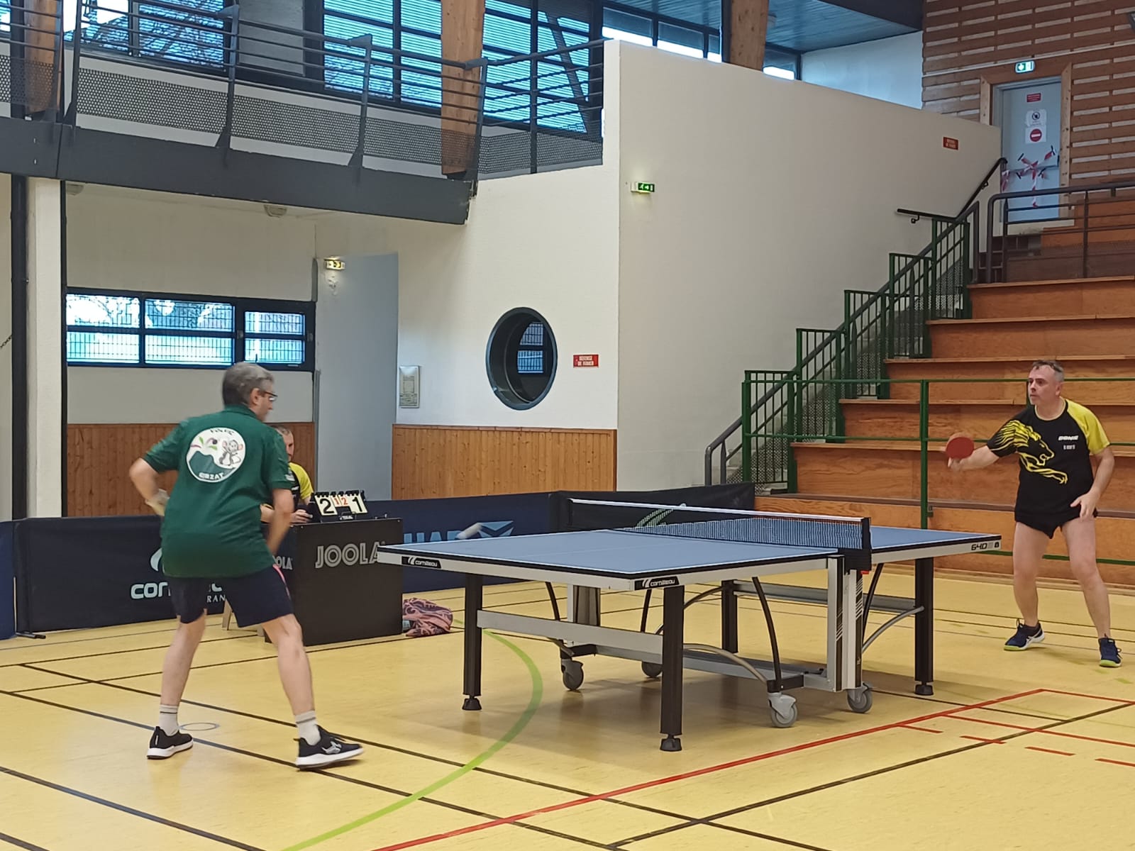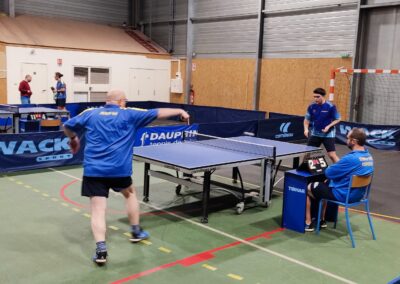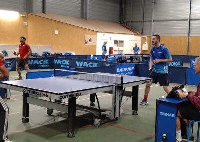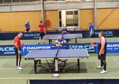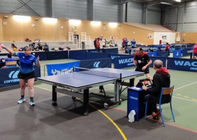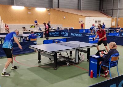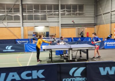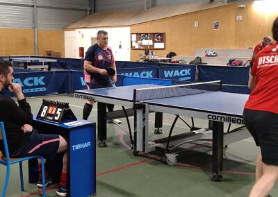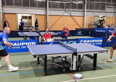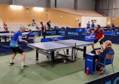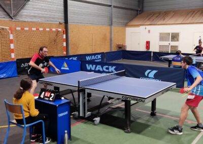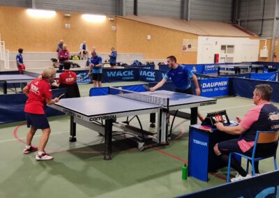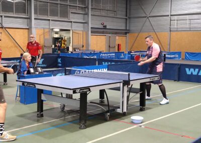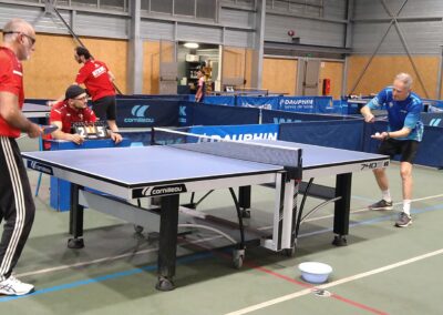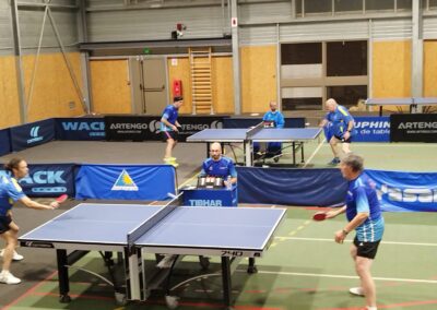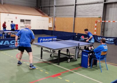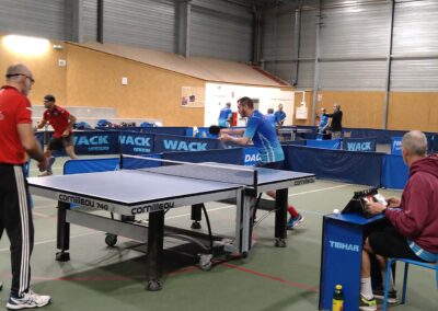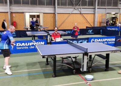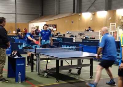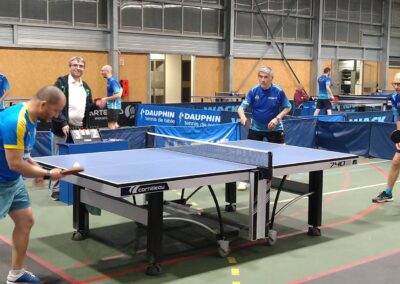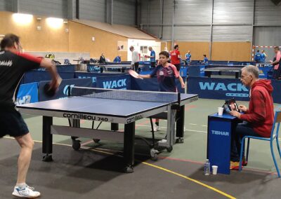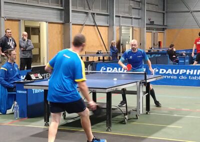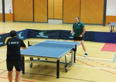 Rencontre passionnante avec deux équipes qui se sont rendues coups pour coups. Dans un premier temps à la faveur de l’entente Volvic-Gerzat (4-1), mais Vichy n’ayant pas dit son dernier mot continue de s’accrocher (5-3), rafle les doubles (5-5) et passe devant (6-7). Mais la force de caractère de Gerzat permet de terminer la soirée sur une égalité parfaite 7-7.